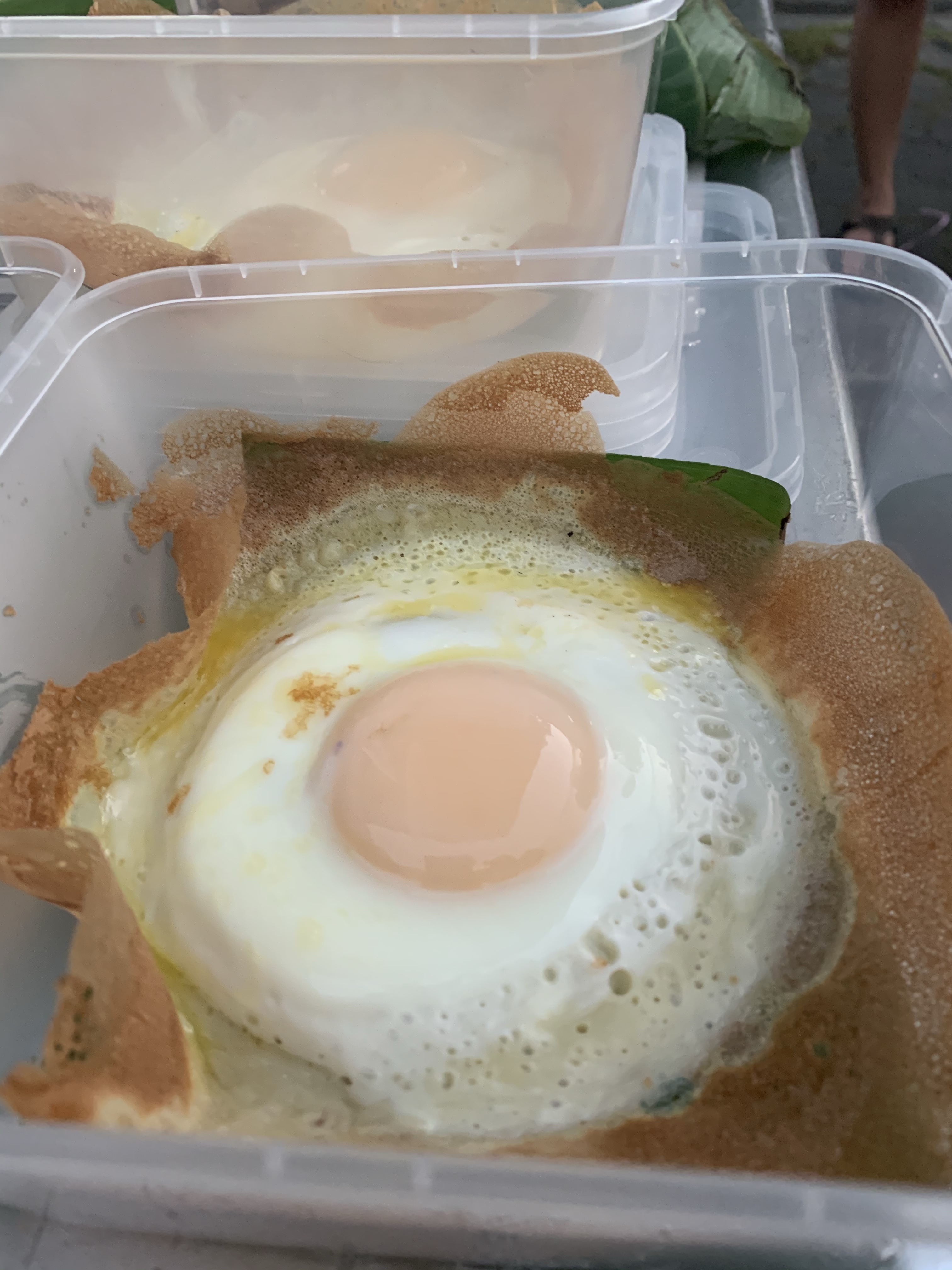 A pack of 5 apom manis is priced at RM4 and no accompaniments are needed as they melt in your mouth. A “premium” or more “atas” version is also available with an egg on top.